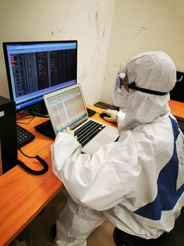 由于指揮部設在T3-D隔離區(qū)內(nèi),她們在上下班路途中難免會路過樓內(nèi)的隔離轉(zhuǎn)運通道,因此做好自我防護也成為她們工作中一項重要的任務。突擊隊每個班次配備一套一次性防護服,為了避免頻繁穿脫造成的二次污染,十余個小時的工作期間,她們都盡量少喝水,實在覺得口干舌燥時,只會稍微喝一點兒潤潤喉嚨,盡量等到交接班完畢離開T3-D之后再去衛(wèi)生間,這對于作為女生的她來說更加不便。