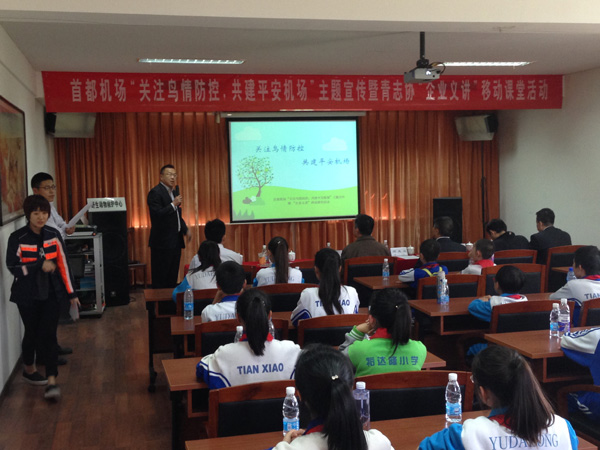 活動中,鄧先山向順義一中附小和裕達(dá)隆小學(xué)的學(xué)生代表頒發(fā)了“鳥擊防范小衛(wèi)士”榮譽(yù)稱號,贈送了鳥擊防范知識科普書籍,鼓勵同學(xué)們掌握科普知識,積極傳播正向的防鳥、驅(qū)鳥的安全理念。飛行區(qū)鳥擊防范模塊的青年員工積極向首都機(jī)場周邊學(xué)校宣講企業(yè)鳥擊防范安全理念,主動宣傳首都機(jī)場鳥擊防范重點(diǎn)工作、主要防范措施及科技創(chuàng)新內(nèi)容,通過幽默的語言講述,讓同學(xué)們在潛移默化中感知與學(xué)習(xí)。同時,北京市野生動物救護(hù)中心金牌講解員帶領(lǐng)同學(xué)們實(shí)地參觀各種鳥類,并現(xiàn)場講解鳥類知識,此次移動課堂的授課方式贏得了老師和同學(xué)們的一致好評。