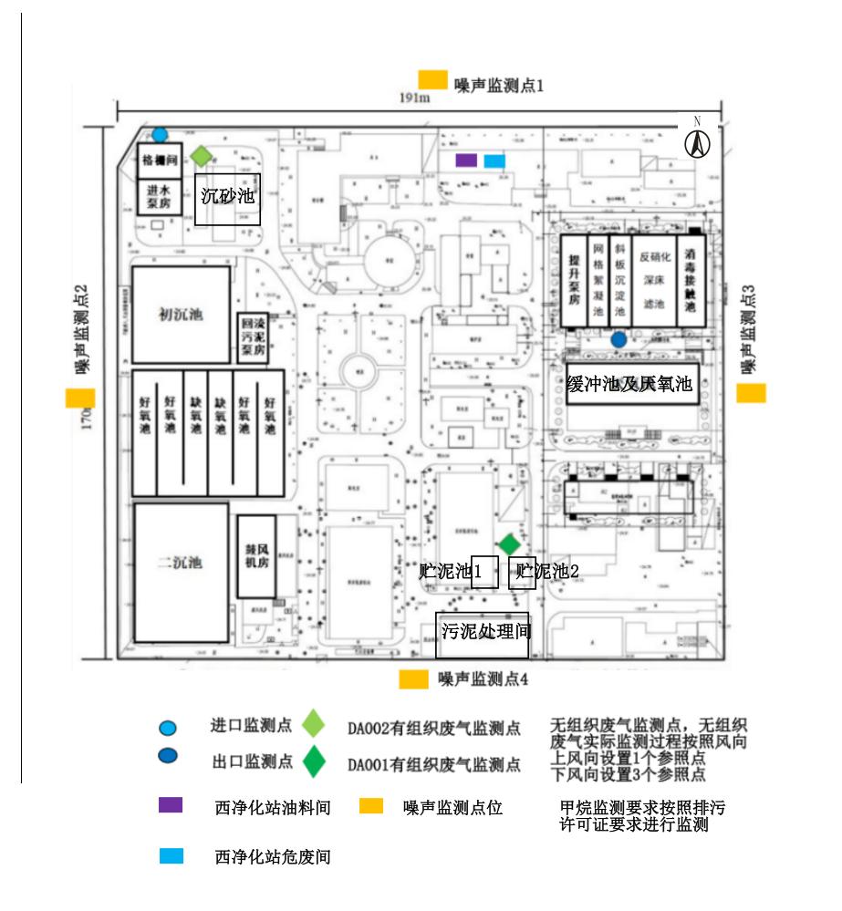 企業(yè)自行監(jiān)測點位示意圖。(在廠區(qū)平面圖上標注監(jiān)測點位置、名稱、編號及經(jīng)緯度。