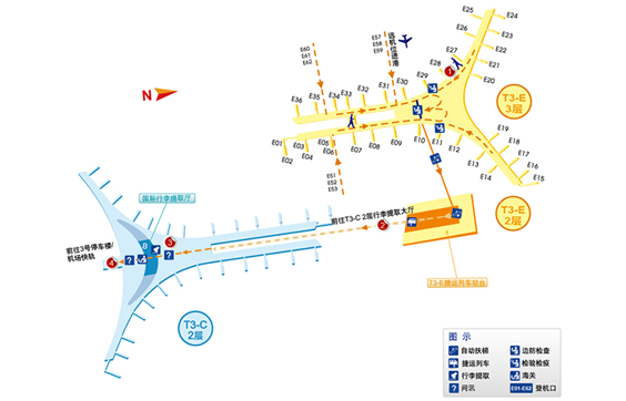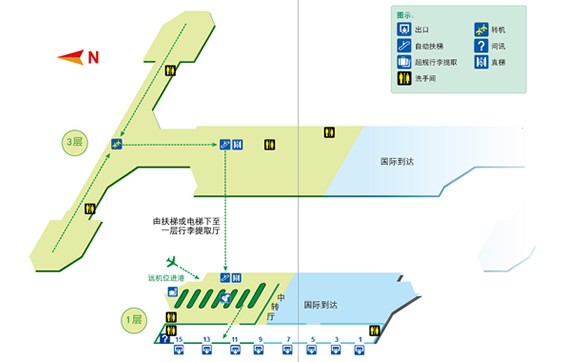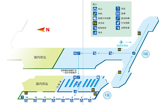 進入航站樓以后,您可參照航站樓內到達旅客的引導標識前往行李提取大廳。