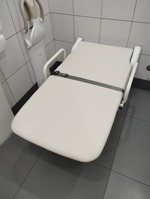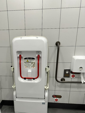 在2號航站樓出發(fā)層北側(cè)無障礙衛(wèi)生間內(nèi),設(shè)置了無障礙護(hù)理床。輪椅旅客、老年旅客、病人及護(hù)理人員可以使用護(hù)理床,更換整潔的衣物、紙尿褲、導(dǎo)尿等。