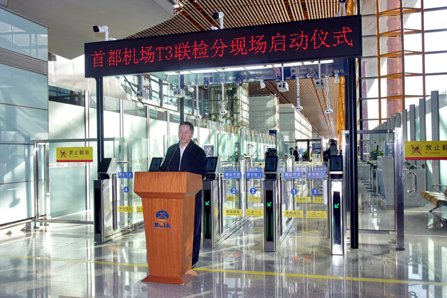1月14日下午,首都機(jī)場(chǎng)舉行T3聯(lián)檢分現(xiàn)場(chǎng)啟動(dòng)儀式。首都機(jī)場(chǎng)集團(tuán)公司黨委委員、首都機(jī)場(chǎng)股份公司黨委書(shū)記張國(guó)良,首都機(jī)場(chǎng)股份公司副總經(jīng)理杜強(qiáng),北京出入境邊防檢查總站副總站長(zhǎng)吉利霞,首都機(jī)場(chǎng)海關(guān)副關(guān)長(zhǎng)段凱,中國(guó)國(guó)際航空股份有限公司總會(huì)計(jì)師肖烽,北京首都機(jī)場(chǎng)航空安保公司總經(jīng)理李萬(wàn)明等領(lǐng)導(dǎo)出席啟動(dòng)儀式。