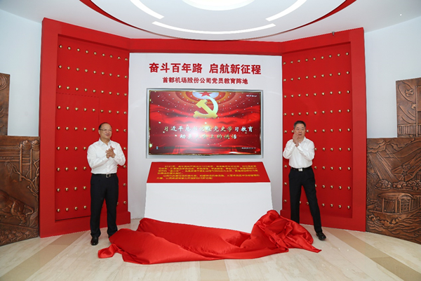為慶祝中國(guó)共產(chǎn)黨成立100周年,教育引導(dǎo)全體黨員持續(xù)深入學(xué)習(xí)百年黨史,感悟思想偉力,從百年奮斗歷程中汲取智慧力量,以昂揚(yáng)姿態(tài)奮力開啟全面建設(shè)社會(huì)主義現(xiàn)代化國(guó)家新征程,6月30日,首都機(jī)場(chǎng)股份公司黨委組織開展了6月黨委理論學(xué)習(xí)中心組(擴(kuò)大)學(xué)習(xí)、主題黨日暨黨員教育陣地落成儀式。