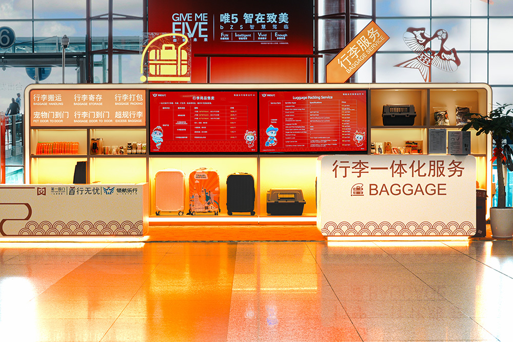 為助力更多旅客“徒手出行”,首都機(jī)場(chǎng)創(chuàng)新行李服務(wù)模式,于近期推出“首行無(wú)憂·行李一體化”服務(wù)產(chǎn)品?,F(xiàn)在,首都機(jī)場(chǎng)航站樓內(nèi)設(shè)置有7處服務(wù)柜臺(tái),均可一站式辦理行李打包、行李寄存、行李搬運(yùn)、行李“門(mén)到門(mén)”,更支持寵物“門(mén)到門(mén)”、大件行李運(yùn)送等特色服務(wù)。